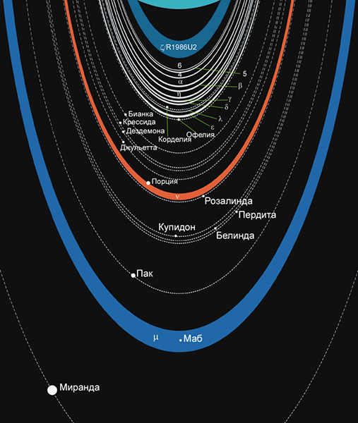 Особенности колец Урана до конца не изучены. Известно, что у Урана тринадцать колец. Не исключено существование неполных дуг и пылевых полос среди изученных. В отличие от сатурнианских эти образования темные и узкие, состоят из крупных осколков. Возможная причина возникновения – крушение спутников под воздействием приливных сил или в результате столкновения. Возраст колец составляет не более 600 млн лет. Сам процесс их появления был недлительным – всего 100–1000 лет.
