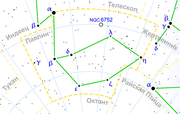 Это созвездие относится к самым молодым – оно вошло в астрономические каталоги только в 1603 году. Но совсем скоро после этого астрономы вплотную заинтересовались объектами, входящими в состав этого созвездия. Так, NGC 6872 сегодня считается одним из самых крупных представителей спиральных галактик. А совсем рядом находится линзовидная галактика IC 4970, которая взаимодействует со спиральной галактикой NGC 6872.