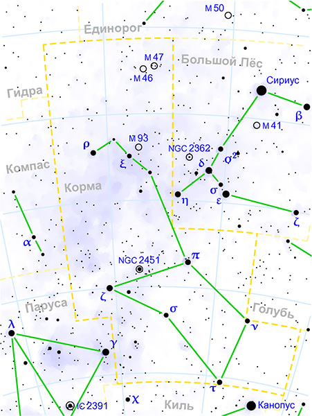 Созвездие Корма только в 18 веке стало самостоятельным. До этого оно принадлежало к созвездию Арго, которое было расформировано на три отдельных созвездия французским астрономом Лакайлем.